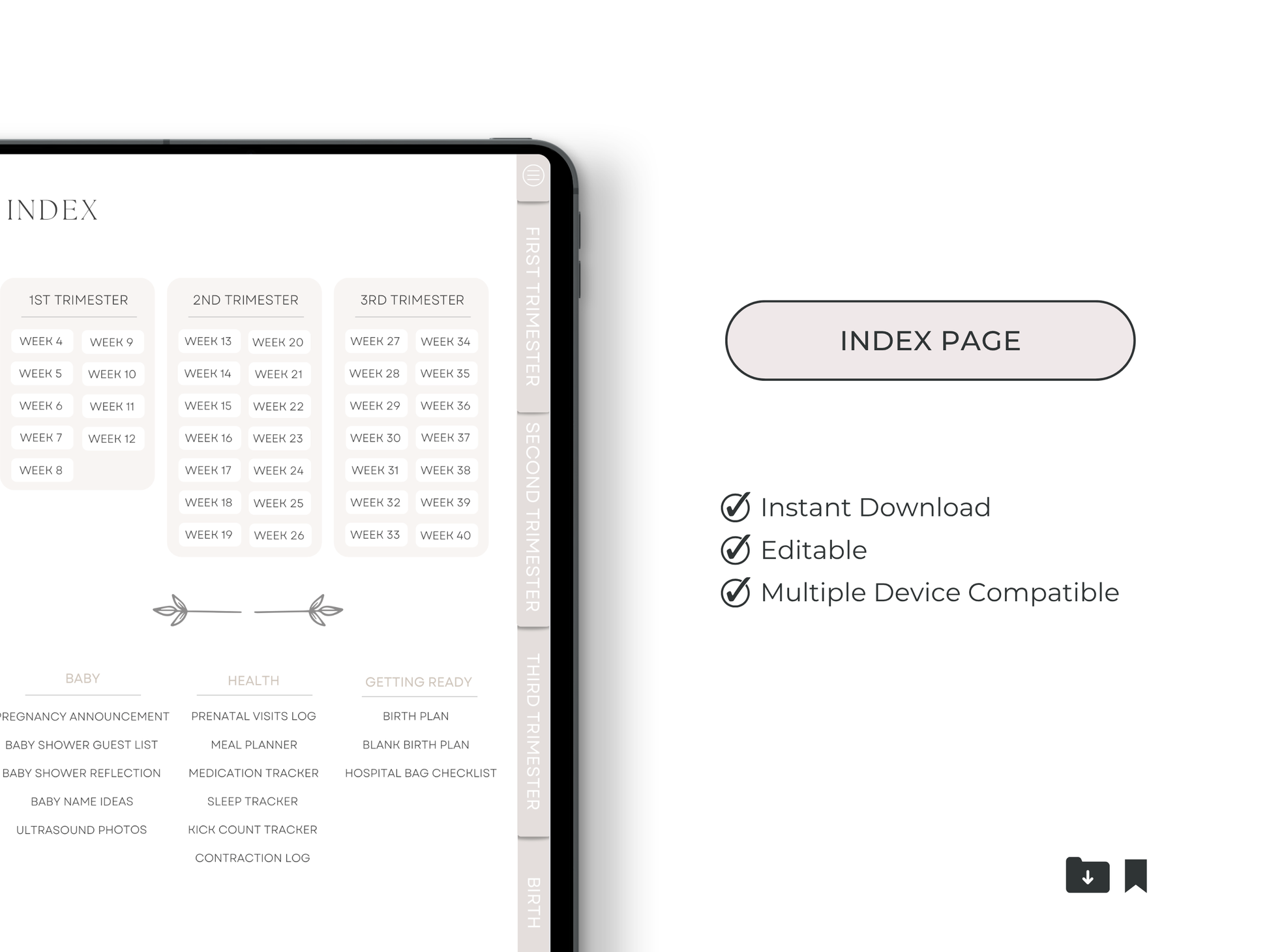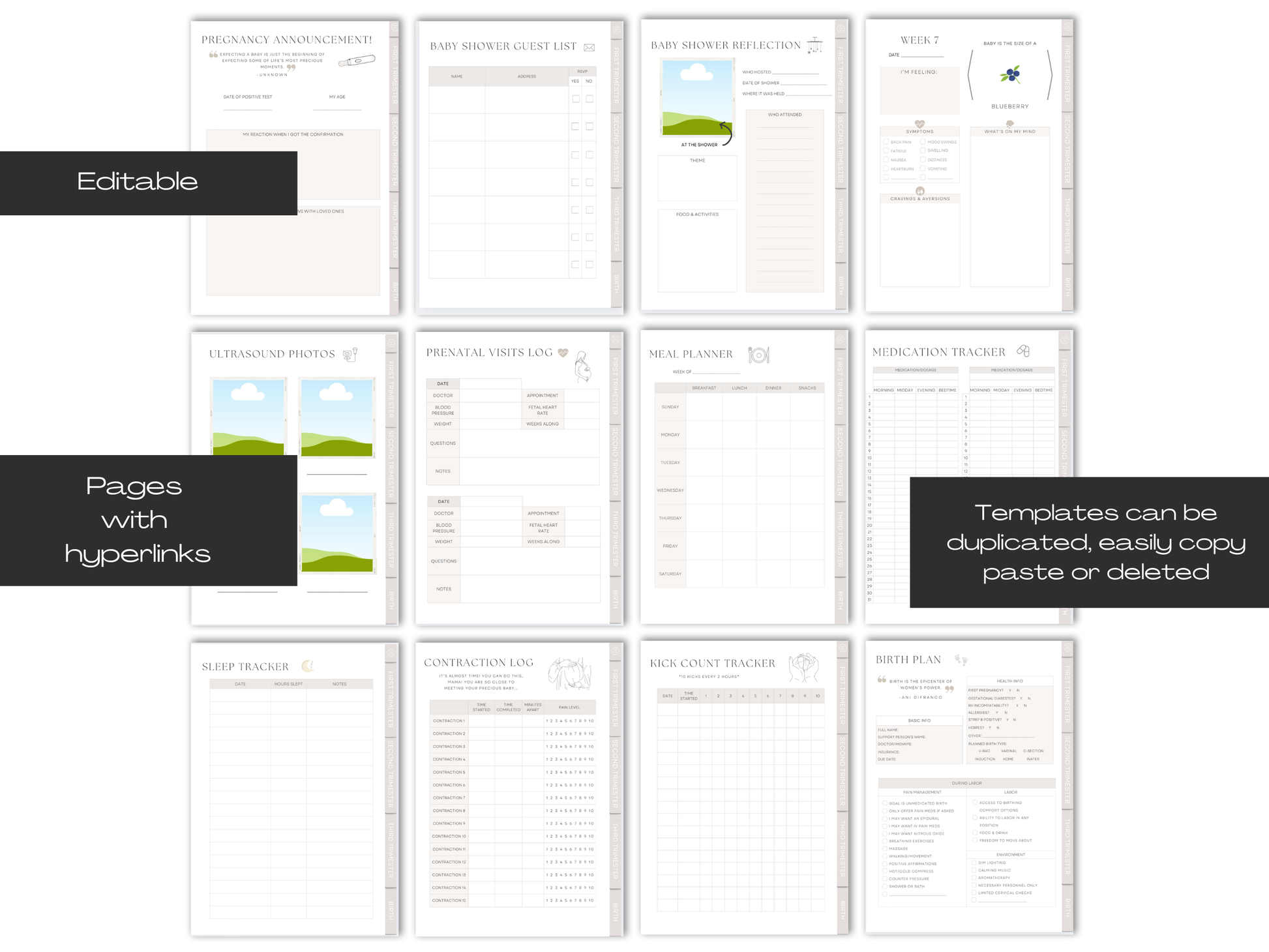- Instant access to a hyperlinked My Pregnancy Digital Journal Template